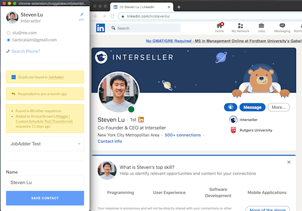 Interseller enables external recruiting teams to work both sides of the business: candidate and client development. Our platform provides a streamlined way to source, prospect, engage and ultimately book more conversations in less time. Why? Because you shouldn't have to spend all your time searching for accurate contact information, doing manual follow ups, or updating your CRM.